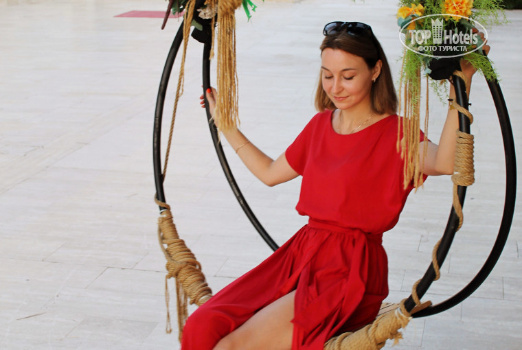 Территория не большая но есть где разгуляться. Большой бассейн, мы часто плавали после завтрака. Так как после обеда там слишком много людей. Есть крытый бассейн, он находится в помещении СПА. Есть горки, но там в основном одни турки. Русских редко встречал. Прокатились пару раз и больше не ходили.