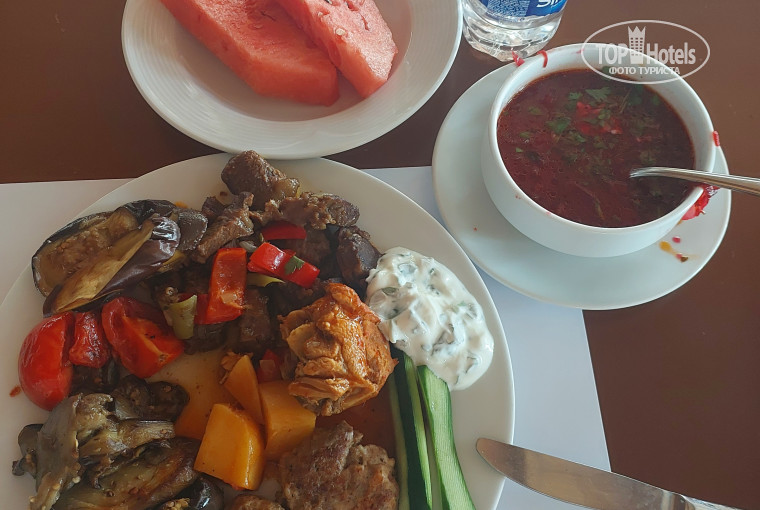 По питанию: все хорошо ,много фруктов, курица в разном виде,говядина ,субпродукты, все приготовленно вкусно очень достойно, в Турции раз 8 есть с чем сравнить ,да море продуктов, кроме рыбы на гриле нет,так заплатите в 2 раза больше за путёвку и будет вам счастье)).Лично меня и людей с кем мне пришлось общаться, всё более чем устраивает. Цена качество. Интернет ловит везде,кроменомеров. Теретория ухоженная, вся в зелени, комары есть,возьмите фумигатор.хочу отметить, весь обслуживающий персонал улыбается и желает приятного аппетита и хорошего отдыха. Будьте сами доброжелательными ,улыбайтесь и наслаждайтесь отдыхом, а не ищите недостатки. Всему персоналу огромное спасибо, за их нелегкую работу. Добра и процветания вашему отелю. Буду рада посетить ваш замечательный отель ещё раз.