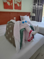 В номере есть чайничек, вода, кофе, чай. Гель для душа, шампунь так де имеется. Еще губка для обуви и набор с иголкой и нитками. Достаточно просторные. За чаевые вам каждый день будут крутить животных из полотенец. Уборка каждый день. Проблема у номеров с дверями. Открываются магнитным ключом далеко не с первого раза.