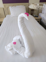 Отдыхали в Concord Sport с 12.08.2024 по 25.08.2024г. двое взрослых и ребенок 12 лет. В Египте не первый раз, по отзывам уже было кое-какое представление об отеле. В отель мы приехали в 5.30 утра следующего дня, поэтому нас заселили сразу. Номер у нас был на первом этаже, балкона нет, сразу выход в сад. номер 8410, я заранее в заявке на бронирование указывала «не первый этаж», но увы. На балконах первого этажа нет сушилки для белья, это минус, но русские люди всегда с веревочками))). Номер оказался приличным, мебель не очень старая, все работало, живности не было, видно, что стараются поддержать номера в хорошем состоянии. Бар в номере пустой, пополняют только воду. Мы приехали на море, а не в номере сидеть, поэтому это было не очень важно. Уборка номера хорошая, меняли полотенца и заправляли кровати, пополняли шампунь, гели и т.д. В номере есть чайник, фен, мыло, шампунь, гель для душа, лосьон для тела, кондиционер для волос. Под кровать не заглядывали))). Несмотря на нахождение аэропорта через дорогу от отеля мы самолетов не слышали. Еда вкусная, разнообразная. Всегда удивляюсь, когда пишут, что есть нечего. Мясо вареное, тушеное, жареное, овощи свежие, тушеные, гриль, морепродукты были пару раз, разнообразные сладости, фрукты (дыни, финики, виноград, апельсины, сливы). Из напитков соки (типа юппи), чай, кофе. На обед и ужин напитки приносят официанты, приносят быстро (вино, пиво, газировка, соки пакетированные манго, гуава). Так как отель находится на 2 линии завтракать и обедать можно в главном ресторане и Итальянском на пляже, а вот ужинать только в главном ресторане на 2 линии. Только по воскресеньям можно пойти в Итальянский ресторан на ужин. В ресторанах и барах обслуживающий персонал всегда улыбается, старается быстро убрать грязную посуду и сервировать для следующих гостей. Очередей за едой нет, в барах бывает очередь за напитками. Из местного алкоголя пили только пиво. Проблем с кишечником ни у кого не было. Между первой и второй линией курсирует автобус каждые 10 минут, можно пройтись пешком, тоже 10 минут. Отдыхающие со второй линии могут пользоваться пляжем, барами, Итальянским рестораном и бассейнами. Бассейны чистые, вода теплая, горки для детей работают с 10 до 12 и с 15 до 17. Море просто шикарное, хотя 10 лет назад на этом рифе рыб было больше. В отеле пляж имеет три уровня: у понтона внизу и на возвышенности. На пляже всегда есть свободные шезлонги, особенно на третьем ярусе, а вот у бассейна найти свободный лежак проблематично. Очень хорошие зонтики на пляже. Сделаны из соломы, новые и очень большие. Замечательно спасают от палящего солнца. Полотенца выдают с 7.00 до 18.30 на пляже и у бассейнов, таскать их с собой не нужно. Понтон один, для тех, кто хочет поплавать на глубине, а песочка для детей практически нет, особенно когда отлив. Кораллы красивые, рыб много, море теплое, песок чистый, спец.обувь нужна если вы будете ходить на мелководье. Анимация с 10 до 12 и с 15 до 17 на пляже. Аниматоры очень стараются. Детскую анимацию не видели, т.к. нам не нужна была. Детский клуб есть, на первой линии детская площадка. В лобби по вечерам играет пианист, талантливый молодой человек, пели с ним русские песни как в караоке))). На территории отеля все зеленое, стригут, поливают постоянно. Наконец закончился ремонт речки и водопада у главного ресторана. Так же на территории Спорта есть лошади, можно и