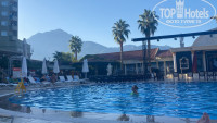 Был в этом отеле , прекрасный сосновый бор , вежливый персонал, чистые номера, на ресепшене всегда помогут решить вопросы , отличный вид на горы. Кормили отлично , большой ассортимент блюд, голодным не когда не останется ! Если закрылась столовая, то в другом месте тут же открываются снеки или сапожное , гизламе☺️.Хороший бассейн , рядом бар , алкоголь нормальный ( местный), есть горки для детей взрослых! На пляже есть снек бар и наливают 🥃☺️🤣. Пляж крупная Галька , но ходить можно. В воде назойливые рыбки пристают и покусываю не особо приятно. А в целом хороший отель , рекомендую!