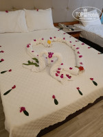 Номера. Номера обычные, для двоих переночевать хватит. Кондиционер нормальный, телевизор работает, кровать удобная, белье чистое. У нас убирали нормально, постель меняли почти каждый день. В ванной только жидкое мыло в дозаторе, в душевой - гель. Шапочка для душа, правда ещё и ушные палочки. Фен есть. Мыльно-рыльное надо брать с собой, конечно.