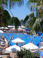 Бассейн. Это боль. Один небольшой бассейн (крошечный малышковый не в счёт). В этот же бассейн выведены горки, тут же водное поло, тут же аквааэробика, тут же прыжки с бортиков орущих детей всех возрастов, да и взрослых, т.е. просто поплавать спокойно не выйдет. Нам с мужем за 12 дней не удалось ни разу. А нет, один раз, выйдя в 7 утра, перед завтраком, я всё-таки это сделала - пересекла бассейн туда-сюда пару раз, не столкнувшись ни с кем. Из-за скученности возле бассейна у лежаков грязно, пластиковые тарелки, стаканы, разлитые напитки. Лежаки заняты с 6 утра. В общем, бассейн вызвал отторжение впервые за 10 лет отдыха в Турции. А это немаловажно, потому что, едя в отель, нам нужен и бассейн кроме моря. Одно другому не мешает.