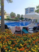 Рестораны и бары. Кормят хорошо, разнообразно. Конечно, блюда повторяются, но это везде так. Конечно, очереди на ужине за каким-нибудь кебабом, конечно, надо прийти к открытию, чтобы найти себе место, конечно, мясо разбирается быстро, надо подождать следующего выноса, конечно, вечером жарковато, кондиционеры не справляются, конечно, официанты стараются, но не всегда успевают убрать. Это всё вытекает из той же самой проблемы - густонаселенность отеля. Но! Еда приготовлена хорошо, вкусно. За исключением пары раз, когда салаты из баклажанов были прокисшие, реально подванивали. Это даже странно, потому что в остальном не придраться, - всё вкусно и разнообразно. Фото прикреплю. Бар возле бассейна разгружал основной ресторан в обед, это плюс. Там можно полноценно поесть: мясо, картошка, овощи, бургеры, что-то ещё. Там же в 11-30 включают "Домик с айраном". Первый раз такой вижу. Фото тоже прикреплю. Интересно смотрится, но не практично, потому, что айран циркулирует как вода фонтане непрерывным циклом, а я видела, как некоторые люди, подставляя свой стакан под струю, мочили руки этим айраном (не специально, так получается, ибо струя сильная), соответственно смывы с их рук попадают с общий айран. Бррр... И айран так себе на вкус, водянистый. Бывало и лучше. Но холодненький. Коктейли делают какие-то, пиво, раки... как обычно, ничего сверхестественного не ждите. Чай, кофе, фанта, пепси - рекой. Мороженное дают в 16-00 по-моему или около того. Очередь естественно. Гезлеме с картошкой или сыром печёт приветливая женщина до 16-30, кажется, в баре около бассейна. Вкусно.
