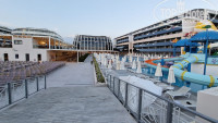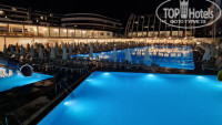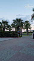 Территория общая для двух отелей, на мой взгляд очень маленькая, совсем нет зеленых зон и деревьев. У каждого отеля имеются по одному большому бассейну, одному маленькому бассейну с горками для детей, аквагорки из 5 спусков. Вокруг бассейнов лежаки в два ряда. Но, их занимают рано утром полотенцами и, если прийти попозже, то будет удачей найти свободный лежак. Вся анимация проходит около бассейна второго отеля, поэтому в нашем можно спокойно плавать))). За корпусом отеля располагаются около 9-ти бесплатных аттакционов. Есть 3 вида каруселек для совсем маленьких детей, парочка экстримальных, автодром, американские горки, карусели. Придется постоять в очереди, но вполне реально прокатиться за вечер на всех аттракционах, и не раз. Рядом амфитеатр, вечерами там шла или трансляция футбольных матчей, или просто светомузыка.