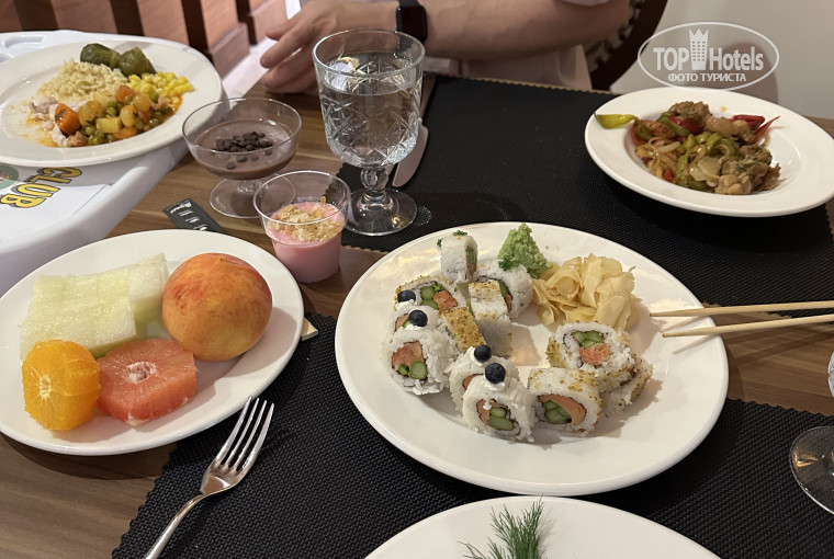 В основном ресторане по вечерам были тематические ужины каждый день. Но ВАЖНО! Видела в отзывах об отеле, что детям банки HIPP дают, но их нигде не было (у нас случилось чп (не по вине отеля) и ребенок в какой-то момент мог есть только пюре. И при выезде из отеля рано утром я таки спросила про банки, чтобы их сложили нам в ланч боксы с собой, но мне сказали на ресепшене , что они доступны только для номером children friendly - этого я не поняла, думала весь отель в принципе children friendly))) и что попробуют уточнить все таки, но в итоге в ланч бокс для ребенка положили только банан…