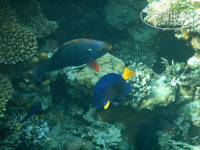 Море конечно шикарное, о нем я мечтала со времен покупки подводного Никона. Получается это мое первое наслаждение красным морем (раньше я хуже плавала и боялась воды). До него возит автобус каждые 10-15 минут. Несколько раз мы ходили туда пешком, но по жаре это не очень здорово, круче на транспорте с ветерком. На пляже есть бар с напитками и бар с напитками и вредными закусками: пицца, картофель фри, бургеры (там, где останавливается автобус). В море мне встретились: большеротый губан, метлохвостый хейлин, узкополосый абудефдуф, синеперый каранс, синеперый балистод, лазоревый клюворыл, иглобрюхи, рыба-игла, маленький скат, крылатки- мама с ребенком, ринекант пикассо, бабочки, наполеон губан, хирурги и др.