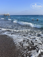 Пляж чистый, заход в море нормальный, у нас у всей семьи были аквашузы и дискромфота нам камни не доставляли, на пляже есть бар где с 12 до 16 кормят (фри, мясо, рыба, бургеры, салаты, фрукты, пончики )