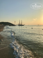Пляж и море. Чудесные. Дорога на пляж по тенистой улочке, можно на машинке с улыбчивым водителем со специфическим музыкальным вкусом(ласковый май, сектор газа и прочее). Можно пешком. Так даже лучше. Море теплое, с утра до обеда чистое, к вечеру могут быть волны. Опять же полная загруженность отеля немного корректировала наши планы и мы уходили к бассейну с горками, там было свободнее. Можно погулять по пляжу по территории других отелей. Это не возбраняется. Если пойти влево, то можно дойти до Риксоса и сделать красивые фото, вправо - последний - Нирвана, если не ошибаюсь. Но пользоваться пирсами и инфраструктурой других отелей нельзя. Мы катались на яхте на морскую прогулку - очень понравилось. 70$ на троих.