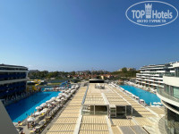На территории сразу 2 отеля - volare и be mine (можно пользоваться всей инфраструктурой обоих), 2 больших бассейна (все активности вроде водного пола, аквааэробики и т.д. проводят только в бассейне be mine), водные горки для малышей и для взрослых, небольшой луна-парк (работает вечером), бары, 2 главных ресторана, рестораны a la carte. Если вам нужна большая живописная зеленая территория - этот отель не для вас. Зелени практически нет. Отдыхающих ОЧЕНЬ много, особенно местных (около 70-80% - турки, немного европейцев, остальные - русские). Есть 2 тренажерных зала (муж ходил в volare - очень душно, оборудован скудно, несколько тренажеров сломаны). Есть хамам, солевая комната и сауна (мы не ходили), а также крытый бассейн с прохладной водой. СПА не посещали, цены кусаются (например, 60 минут общего массажа - 70 евро, но вам конечно же скажут, что только сегодня и только для вас невероятные скидки).