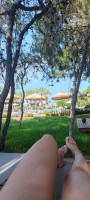 в небольшой локации между двух центральных бассейнов в тени раскидистых сосен (таких зон в отеле три, две из которых находятся около аквапарка).Не мешает присутствие других отдыхающих и невольное подслушивание чужих бесед...👌