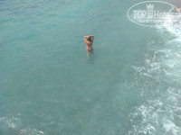 Морюшко тёплое, лазурное, чистейшее, много рыбок. Вход галька. Я ходила в аквашузах, муж и дети босиком. Мы в основном купались с пирса, так как все любим нырять. Метра 3 от берега не глубоко, потом резко вниз)))
