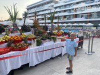 Очень качественная еда с европейским вкусом, на 5-тые сутки только поняли что по вкусу, а так за бесконечные варианты питания с 7 до 23 и отдельным рестораном у берега за 4-5 дней только поймешь что больше нравится. Много рыбы - сибас, морепродукты , свежие кебабы с огня, шашлыки.