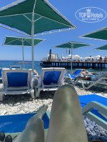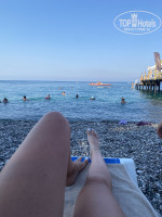 Пляж галька. Нужны аквашузы, чтобы заходить с берега. Мы вскгда заходили в пирса. До моря идти примерно 5 минут через подземный переход. Море очень классное, чистое, теплое. Пирс бесподобный. Во время нашего пребывания в отеле на пляже возле ресторана был ремонт, но это никак не мешало.