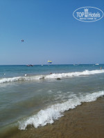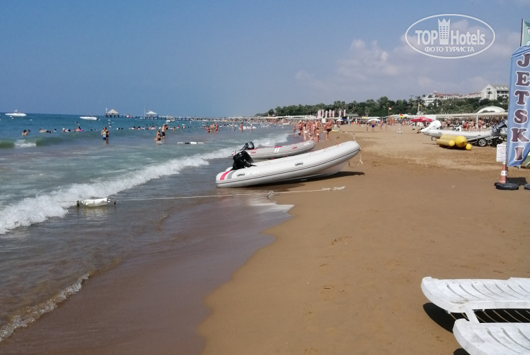 На море добирались на автобусе, который ходит часто. Отдаленность моря от отеля вообще не смущала. Пляж шикарный, большой, лежаков много, в любое время есть свободные места. Море теплое и чистое, дно песок, со стороны пирса, чуть глубже, есть камни, будьте осторожны (об этом пишут во многих отзывах). Ресторан на пляже отличный, еда на любой вкус, выбор большой, мы иногда обедали на пляже. Там же пекут гёзлеме с разными начинками. Есть еще на пляже вафли и мороженое.