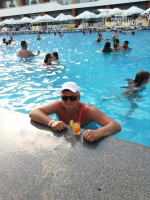 На территории отеля большой бассейн и аквапарк для детей и взрослых. Горки очень понравились, крутые. Лежаки у бассейна занимают еще до начала завтрака. Поэтому с лежаками большая проблема. И это было изо дня в день . Так как отель был заполнен на 100 % и свободной территории как таковой нет, создавалось впечатление переполненности и суеты. В основном у бассейна любят отдыхать турки с семьями, которые много курят и едят))