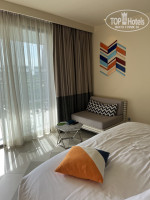 Отель для гостей от 12 лет, возрастным вряд ли подходит из-за расположения, но они там были :) В номере будет тесно, если вас больше двух человек. Персонал вежливый, заселили нас в 12 часов, как только приготовили номер. Помогли быстро открыть сейф, когда мы забыли свой код. Уборка оочень посредственная, если бы не замененные полотенца, то мы бы и не поняли , что была уборка. Ничего не добавляют , пока не попросишь (диски ватные, мыло). Есть умная колонка , можно через блютуз послушать музыку. На телеке 20 нерусских каналов. Наш Балкон выходил на дорогу, неплохой вид по сравнению с альтернативным «в стену» этой же категории. На дороге нет такого плотного движения, чтобы шум досаждал. Горка, которой все пугают, вообще не доставляет дискомфорта, если вы без труда можете зайти хотя бы на 3 этаж. Зато никакой оползень или затопление не страшны. Чего не скажешь об отелях на уровне дороги. Кухня разнообразная, но русскому человеку, кроме яиц, привычной еды не увидеть :)) Гости отеля - интернационал. Бассейн чистый , вечером приходили с щетками в спец.одежде сотрудники и мыли, чистили. Шезлонгов немного , но они не были ни разу заняты все полностью. До моря идти с отеля минуты 3, реально. Рядом есть и обменники, и фрукты, и 7/11, и кафешки. Порекомендовала отелю Заменить халаты на новые. Мало крючков или полочек в ванной, а также какого нибудь шкафчика, чтобы не раскладывать вещи по номеру как на базаре.