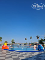 Самый большой минус для нас - это сервис ресепшена. Приехали мы в отель в 8 вечера, уставшие и голодные с дороги, заселить нас не могли более часа, при этом заселение в номера происходит в 14.00. Оказалось, что нет свободных номеров нашей категории. Предложили с доплатой более высокую категорию, мы отказались, но они сказали, так и быть, поселим вас туда бесплатно, ну или как вы решите, платить что-то или нет. Ну и все равно выбора у вас нет, так как нет ни одного свободного стандартного номера. Ок, показали, куда идти рукой в темноту и мы пошли сами с чемоданами и ребенком. Конечно, ничего не нашли сами, вернулись к ресепшену, поругались и нас отвезли в номер. Номер оказался около сцены, очень слышна музыка в номере, мы отказались, перевезли в другой номер, подальше, там потише слышно, сказали, завтра переселят в наш изначально забронированный номер (стандартные номера находятся около детской зоны, там тишина). Из-за всех этих проволочек, мы не успели на ужин, ели шашлык в кафе, которое работает ночью. Вещи не разбирали, так как завтра надо было переселяться в другой номер, это все очень неудобно! Утром выспались, сходили позавтракали и покупались в море, пришли на ресепшен к 13.00, там злой недовольный турок сказал, чего вы так поздно пришли, практически отругал нас (нам не говорили, во сколько надо прийти на ресепшен), сказал, так вы еще бесплатно были в том номере, ага. Потом было переселение, которое тоже заняло достаточно времени. С таким отношением впервые столкнулись на отдыхе, но решили не связываться, чтобы не портить себе отдых. Никаких извинений, никакой компенсации мы не получили за такое заселение и причинение нам неудобств как гостей отеля. Мы не просили никакой повышенный номер, просто хотели быстро заселиться в оплаченный номер и спокойно отдыхать, а не решать проблемы, возникшие во вине отеля и еще выслушивать недовольство персонала.