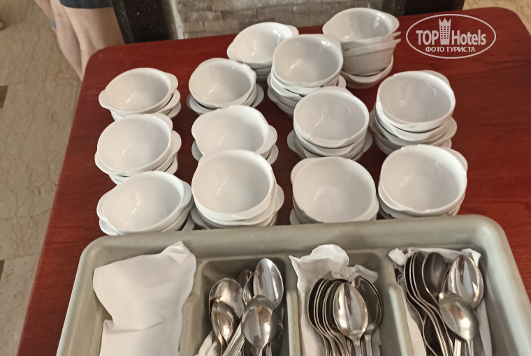 Теперь замечания . Вход в море на средней части (на моле в сторону где мелко) очень не удобный . Хотелось бы как второй у причала. В столовой почти все глубокие тарелки битые. Найти целую почти не реально (у меня ни разу не получилось). Фрукты - это кошмар. Из съедобного финики (отличные финики собирали с газона, вкуснее чем в столовой))) и виноград. Абсолютно не сладкие дыни (от слова "совсем"), деревянные груши (они их в сиропе замачивают - не помогает, не сладкие совершенно) . Давали гранат (не пробовала, сказать не могу ничего). Почему-то ни разу не давали арбузы (вроде сезон и дешево, но нет). Ну и в баре у бассейна теплые напитки в бутылках.