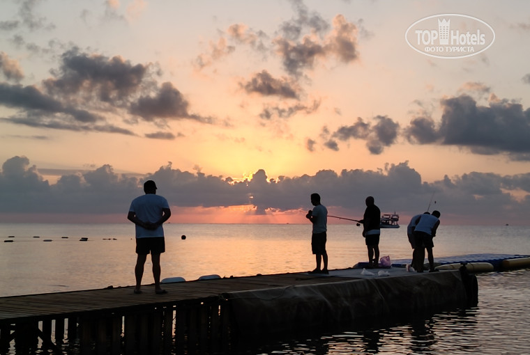 Из неприятностей ещё скажу об очень скользкой плитке в зоне бассейна, особенно, если мокрая. А поскольку люди подходят к стойке бара прямо из воды, то плитка мокрая всегда. Мимо бассейна проходит основная "муравьиная тропа" на пляж и ты по-любому вынужден пройти это место. Я передвигалась там мелкими шажками, как гейша. Либо разувалась и босиком.