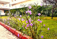 Территория - Маленькая, практически это проход между корпусами, но ухоженная. Садовник старается.