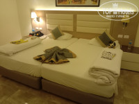 В отель приехали в обеденное время, поэтому сразу же пошли на обед, после чего нас заселили в семейный двухкомнатный номер. Интерьер номера, его площадь, удобство расположения – одни плюсы. Большой душ, красивая раковина, огромные кровати, отлично продуманное освещение, большой телевизор, кондиционер все на 5 с +. Номер располагался на втором этаже, с балкона вид на бассейн, вокруг бассейна такие же номера в двухэтажных корпусах по периметру. Очень уединенная атмосфера, сну и отдыху ничего не мешает. Уборка номера ежедневная и качественная, часто менялось то, что даже не использовалось. Уборщик номера был постоянный, мы периодически оставляли ему чаевые (3-5$) или специально привезенные из России в качестве приятных бонусов российский шоколад, семечки и т.п.