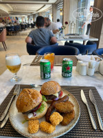 7. Пляж находится в 5-7 мин езды на микробасе от ресепшена Гольф. Заход на пляж с моста, но и есть маленькие лагунки для детей. Едой на пляже не пользовались, но напитки и мороженное брали. Официанты и бармены чуть замученные, думаю из за жары.