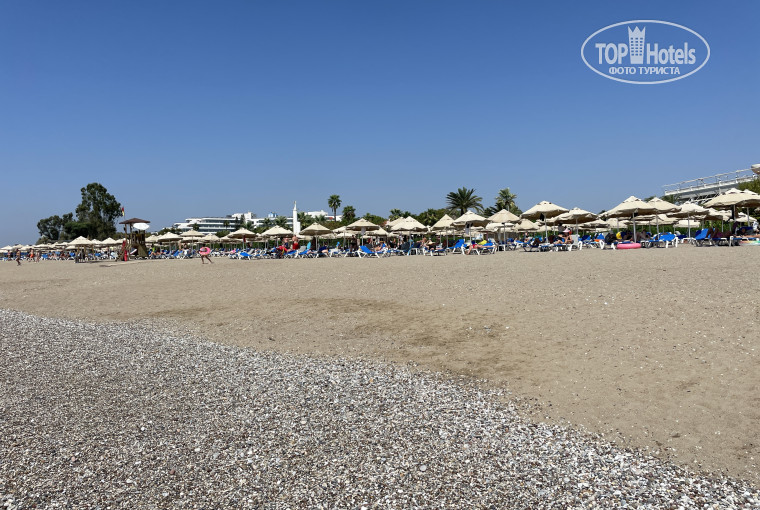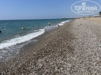 В конце августа море было очень теплом, градуса 32 вода, когда заходили даже не было ощущения что плаваешь, выходили отстыть на пляж) пляж песчано-галечный, вход Галька весьма пологий, мелкой части небольшая линия, под ногами так же Галька, поэтому многие купались в специальной обуви. Пол отпуска точно были волны, пару дней весьма сильные, потом начался штиль.