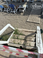 - Спуск на пляж и душевые. Отдельный шок. Такого жуткого спуска из полуразвалившихся досок я не видела. С коляской съехать нереально, да и некуда, дорожек между рядами шезлонгов тоже нет.