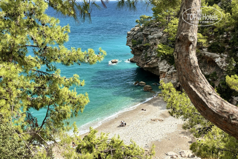 Для людей, которые хотят разнообразия, но не хотят на экскурсии: можно сходить на дикий пляж (в виде бухты, фото к отзыву приложено). Для этого, выйдя из отеля, поверните направо и идите по дороге до конца (мин 25-30). В конце будет отель Juju и перекрытое бетонными блоками старое шоссе. По этому перекрытому шоссе идете до тоннеля, проходите сквозь него и сразу после поворачиваете направо на обочину, там будет спуск из камней и ступеней к пляжу.