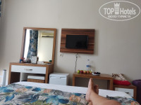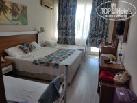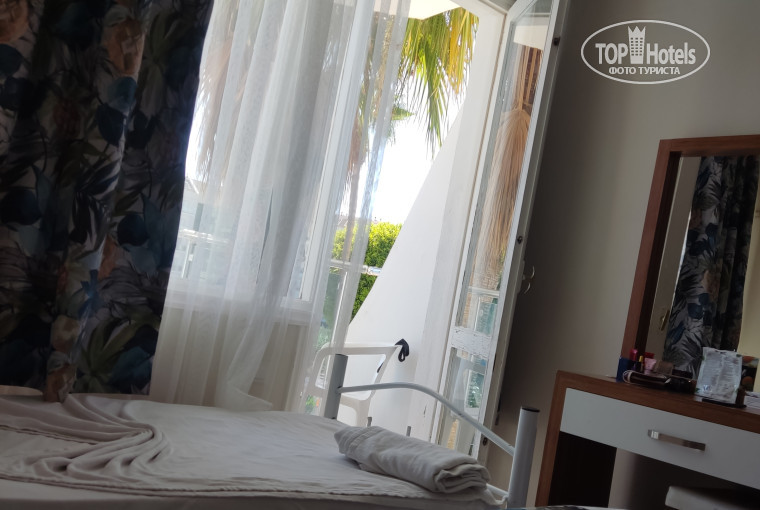 Приехали в отель в 9 утра, браслеты одели сразу и послали завтракать. Переоделись внизу в хамаме и пошли на море. Море рядом, недалеко,Нооо...вниз по горе ,прямо по проезжей части, а обратно в горку!!! У кого больные ноги или сердечко смотрите внимательно! Заселение отвратительное- сначала дают номер размером 3*3 м с одной двуспальной кроватью, хотя мы бронировали и обратили специально внимание турагента на 2 отдельные кровати- мы две взрослые женщины 52 и 56 лет. При этом уверяют что это стандарт двухместный дабл. И только 20$ вдруг помогают нам найти номер "фемели"как они его называют- он тоже небольшой, наверное 2,5*5 м- но туда натолкано 3 кровати- двуспальная и две односпальные, проходы между ними узкие! Места для 4 там явно не хватает! Воду в номер не носят, можно самим просить на рецепшн 1,5л в сутки. Уборка номера удовлетворительная, белье не меняли за 14 дней. Нооо, внимание! В номере ночью в туалете были тараканы - стали оставлять свет включенным и они перестали нас беспокоить( больше не видели их) ,но я ещё и фото на рецепшн показывала он делал пометку, может чем их потравили пока мы были на экскурсии. Кондиционер- отдельная песня- под танцы с бубнами! Он хочет включается, хочет потом не выключается и всю ночь с ним танцуешь- без него душно, с ним холодно, а на пульт он не реагирует- там нам мальчик с рецепшн показал под створкой какую-то кнопочку, надо до него залезть на кровать, подлезть под нижнюю планку-шторку и нащупать её там( не сломав ногти при этом). Территории у отеля нет, только бассейн и за углом в тени горка, для детей нет вообще ничего, заняться им там нечем маленький круглый бассейн для детей до 3-4 лет и две качельки перекошенные.анимации нет ни детской ни взрослой, вечером караоке каждый день. На пляже бар безалкогольный, есть бургеры, наггетсы, картошка фри. Соки, воды, кофемашина. Стаканчики везде одноразовые, даже в столовой. Питание по разному, день хорошо, день без мяса почти. Но один раз прямо был день "невиданной щедрости" прямо в пляжном баре накрыли такой стол! Фруктов как на рынке, прямо в ящиках!!! с чем связано не понятно, но нам повезло- фото выкладываю!( но это была разовая акция) больше такого счастья не было. Хамам и сауна есть с 12-14 бесплатно. В общем отель не плохой, если учитывать его стоимость ,которая ниже троек! Кто настроен позитивно- море сгладит все!!! Оно прекрасно, вход отличный, но пляж очень маленький, лежаков не хватает! Рядом база водных развлечений, во многих отзывах написано ,что это наш пляж и там ещё выплывают транспортные средства и люди лезут туда же купаться! Люди, там стоят везде штендеры "плавать запрещено"- это не наша территория!!! Территория для купания справа напротив Лукоса и слева напротив Сапфира!!! Там сидят спасатели и купаться надо именно там! А лежать на своих лежаках или на полотенце на песочке где угодно!