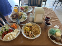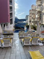 Отдыхали в этом отеле с подругой в сентябре 2024г., только вернулись. Что могу сказать, не все так плохо, как пишут в отзывах, но и недочеты все таки есть. Начну с начала, прилет у нас был в 5 вечера, в отель мы добрались только в 10 вечера! Да, дорога от аэропорта до отеля к сожалению занимает не мало времени, после 5 часового перелета, это чувствуется. Приехали в отель, ужин уже закончился, но напротив отеля есть кафе, мы там прекрасно поужинали) Заселили нас в блок В, на 5 этаж, судя по всему, это старый номерной фонд, конечно ремонт бы не помешал) Номер нам попался достаточно большой, с одной большой и одной маленькой кроватью, телевизор, кондей все есть, к чистоте претензий нет, убирали почти каждый день, полотенца по мере необходимости меняли. Территория отеля не огромная, но все есть, 2 бассейна, один большой и поменьше с горкой для детей, оба очень чистые, за это большой плюс! На территории так же расположены 3 бара, один из них на пляже, там только б/а напитки (алкоголь за отдельную плату), в определенные часы так же выносят луковые колечки, фри и наггетсы. В остальных барах с алкоголем все нормально( пиво, вино, джин, водка и тд) больших очередей нет, работают все сотрудники очень оперативно. Пляж у отеля свой, необходимо просто перейти по подземному переходу, шезлонгов и зонтов много, ни разу не остались без места, все естественно бесплатно. Заход в море галька, без тапок не очень комфортно, но это решаемо, берег одни скалы и видимо , искусственно вырублен заход для отдыхающих, из-за чего большое скопление народу у берега, почему то все болтались именно там, что зайти было иногда проблемно! Нам всю неделю «везло» и были очень большие волны, но чуть отплыв от берега, можно было комфортно купаться. Вода 28-29 градусов, ночью тоже купались, вода прекрасная. По поводу воровства ничего не слышали, у нас ничего тоже не крали. Вай фай бесплатный в холле, если хотите на всей территории и в номере за 7 дней мы отдали 14 евро на человека. С трансфером никаких проблем, все четко, привезли и увезли)) Так что в целом поездкой остались довольны, есть как плюсы так и минусы) По экскурсиям не ездили, но предлагали много всего. По нашему наблюдению, лучше менять рубли на лиры, так выходит гораздо выгоднее в магазинах( в супермаркетах особенно) . Анимация была больше для детей, на взрослых выделялось 45 минут, приезжали танцоры и тд. Аниматоры были просто супер ребята, общались на протяжении всего отдыха!