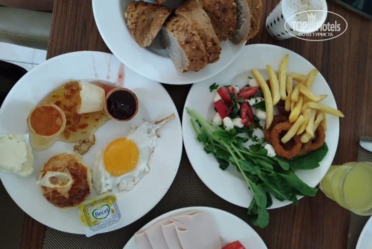 Вывод: Если нужен спокойный отдых без большого количества людей, детей и суматохи. Если любите отдельные баночки шампуне и тд в ванной комнате , чтоб увезти парочку как сувенир с мыльно-рыльным. Если вам нужен обязательно белый песочек в минуте хотьбы от отеля, здесь Вам не понравится. Ну а мы остались довольны: к шуму и гаму мы привыкли и без него не можем. На море мы проводили только утро, поэтому нас не напрягал пляж. количество и качество еды с лихвой покрывало небольшие очереди за ней. Поэтому я рекомендую этот отель. Хорошая бюджетная пятерка.
