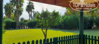 За детским клубом большая лужайка, по краям которой плодовые деревья -мандариновые, апельсиновые, даже авокадо. Лужайка аккуратно подстрижена, в удовольствие погулять по ней босиком. Сбоку лужайки -площадка для волейбола, с сеткой и насыпным песком.