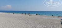 Пляж маленький. Большие пляжи в Кирише, насколько я понял, у отелей 5*, а у "четвёрок"- нарезка небольшими полосами, поэтому лежаки стоят под навесами плотно. Метрах в 50-100 находится в свободном доступе обширная пляжная полоса недействующего отеля - также с мелкой галькой, хорошим заходом. Вполне можно располагаться и купаться там, если тесно на своем отельном пляже. Также соседний отель Мирамор сдаёт всем желающим в аренду беседки с занавесками и топчанами, 30 долл. в день (можно воспользоваться, оплатив в мираморовском пляжном баре). Всё это рядом, и вообще на пляжах этих "четвёрок", кажется, никто не гоняет соседей со своей территории. Туалеты и уличный душ - общие для нескольких отелей при выходе с пляжа. Минус - на пляжах нет переодевалок. Либо переодеваться в туалете, либо идти до отеля в купальной одежде и парео, этому никто не препятствует.