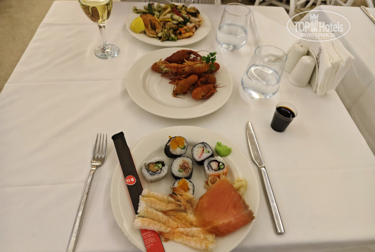 Особо хочется сказать о еде. Такого точно не было в Баруте. Красная солёная рыба и на завтрак и на обед и на ужин. Красная рыба жареная, пареная, почти всегда. Говядина, баранина, курятина - всё очень вкусно и каждый день. Кроме того каждый день была рыба Сибас или Дорадо. Были тематические дни Турции, Мексики и дни морепродуктов в которые были суши, крабы, раки и королевские креветки. На выбор красное, белое вино, шампанское. Пиво на всей территории Эфес бутылочное. Алкоголь хороший, есть как турецкий так и оригинальный. (Егерьмастер, Чивас и т.д) Ну и коктейли всякие делали.