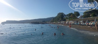 Плаж узкий, но не критично, лежак занимали в 7 30, потом завтраками и на пляж. И от туда не уходили до вечера. Море чистейшее, вода тёплая, можно не выходить совсем из воды.