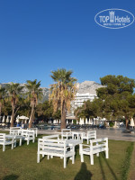 Территория отеля отличная, пляж хороший, мелкая галька. Лежаки на пляже разномастные, так же как и полотенца разных цветов. Убирают на пляже очень посредственно:утром приходишь, с лежаков даже песок не стряхнули. Первым делом лежаки занимают не на первой линии, а на траве между пляжем и бассейном, в семь утра уже было проблемой найти там лежак.