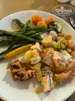 - самый главный - еда! Обычно в турецких отелях можно есть процентов 10-20 от всего. Тут же вкусно всё! Не пережарено, не пересушено, всё идеально, а мы очень привередливы. Для понимания: божественная вареная морковь и свекла, соленый и копченый лосось, запеченые сибас, дорадо, лосось, терпуг, креветки в разных видах, мидии, осьминог, спаржа, ростбиф, много видов мяса, пахлава и прочие десерты, жареное мороженое. Благодарность шефу и всем причастным. Ни одно блюдо не было не вкусным.