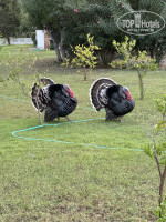 - территория ухоженная, не сильно большая, без гольф полей, но прогуляться можно. Обвитые плюшем домики прекрасны.Индюки, петухи, кошки в наличии.