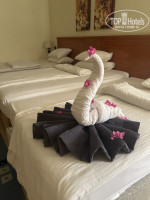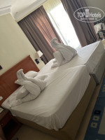 Номер нам достался на первом этаже,с выходом на бассейн(порадовало)номер очень большой,диван,кресло и три кровати две соединили ,на другой спал ребенок.