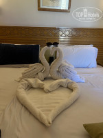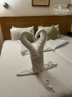 У отеля несколько корпусов, достаточно большая ухоженная территория, на которой есть несколько бассейнов, горки, бар и достаточно места, где можно присесть или полежать на лежаках. Номера немного старенькие, но в целом комфортные для проживания, очень хорошие матрасы, кондиционер, телевизор, а старая мебель думаю не сильно критична, когда ты приехал на море и в номере не так часто будешь находиться. Номера убирали каждый день, крутили лебедей, меняли воду, если вдруг забывали что-то сделать при уборке, то обращаясь к персоналу за решением данной проблемы тут же все исправляли.
