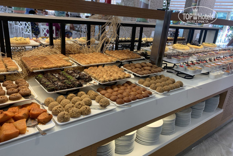 Добрый день, вернулись из отеля 28 сентября. Жили в корпусе у моря, номер не большой, но мы ведь приехали на море, а не сидеть в номере, правда санузел очень маленький!!! Особенно душевая кабинка, для крупных людей будет очень тесно. Кушать ходили в главный ресторан, питание хорошее, каждый день и рыба и мясо, фрукты, очень вкусная дыня!!! Так же перекусить в обед можно и у моря. Персонал очень дружелюбный, всегда с улыбкой, особенно девочки из Кыргызстана. Пиво как будто разбавленное, в обед пили розовое вино - неплохое, в ужин брали джин. В баре лобби делают неплохие коктейли. В отеле очень много иностранцев, особенно румын, такое ощущение, что они приехали всем селом на отдых, очень шумно! Было даже не приятно спускаться в море по настилу с поручнем, они облепляли поручни с двух сторон и старались друг друга перекричать. Вход в море - крупная галька, спуститься можно или с пирса или по настилу, нужны кораллки. В море кусаются рыбки, довольно больно. Территория компактная но очень удобная, состоит из двух частей. Отельный гид у нас был от Интуриста, ничего нам не навязывала. Взяли экскурсию на "турецкие мальдивы" - 80 долларов за двоих, нам не понравилось, очень долго идти пешком от автобуса до яхты, подъем на яхту и спуск с моря, поэтому ноги мокрые и в песке. Сам остров - ничего особенного. А так отпуск удался! Отель понравился!