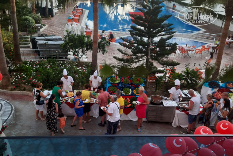 Питание без изысков, но все вкусно и добротно. Мясо, курица, рыба, разнообразные гарниры. Десерты стандартные. Очень удивило отсутствие симитов на завтрак. Это первый отель, в котором не давали симиты. Шеф повар ежедневно был в зале и контролировал персонал. Этот момент приятно удивил.