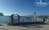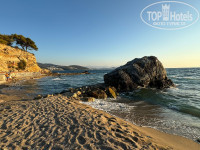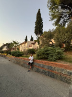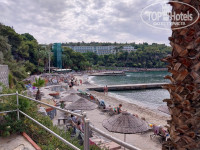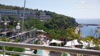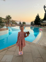 Только приехали с семьей из этого отеля. Начну с того, что уезжая, читал отзывы и много критики было в сторону старых номеров, плохого обслуживания, персонала в целом. Мы приехали рано утром, заселение проходит с 14.00. на ресепшене и в целом во всем отеле персонал действительно не говорит на русском, за исключением пару человек и группы детских аниматоров, там почти все русскоговорящие, вещи положили в камеру хранения и пошли на завтрак и потом гулять по территории, на пляж. мне удалось до 14 поймать на ресепшене русскоговорящую девушку и выяснить, что нам дают номер в общем корпусе с видом на море. Когда уже выдали ключи и мы с носильщиком зашли в номер, то увидели, что он заселен и там живут. Был неприятный момент, пришлось вернуться на ресепшен, но нам тут же выдали другие чипкарты от другого номера и зайдя в него. мы обалдели, что это номер повышенной комфортности, в два раза больше забронированного нами, с классным видом на море, большой диванной зоной. Отель находится на скалистой горе, все в зелени, сосны, оливковые рощи, цветущие деревья с красивыми цветами. все локации расположены таким образом, что не бывает где то в одном месте много народу. Бассейны, солярии на навесных площадках над морем, бары, рестораны, аквапарк и все прочее находятся в рощах деревьев и спрятаны друг от друга. По питанию могу сказать. что выбор большой, особенно фруктов, сладостей. дают много разной курицы и индейки, рыбы. Были рыбные дни с мидиями, раками, суши и т.д. объедались с утра до вечера. На стороне аквапарка весь день делают крошку-картошку, вафли, какие то хачапури, мороженное и прочее, чтобы перекусывать между основными приемами пищи. Детская анимация это отдельная тема. В этом отеле целый детский сад. Отгороженный с разными площадками и комнатами. детей забирают в 10 и до 23 они там могут постоянно что то делать, лепить, рисовать, играть и много много всего, ребенок сам просился туда. По поводу пляжа, да, он не большой и в основном каменистый. есть одна секция, где песок, мы там и отдыхали. Читал комментарии, что нужно вставать в 7 утра, чтобы занять место - мы с таким не столкнулись. Приходили пару раз и в 10-11 и всегда садились на одно и тоже место. Море чистое, красивое, много рыб, очень рекомендую взять маску, чтобы понырять. Вечером всегда детская дискотека и потом развлекательная программа. В принципе ничего необычного, как и везде в Турции и Египте. Небольшой минус, что за пределами отеля в пешей доступности ничего нет. До города нужно проехать минут 20 на маршрутке, но и там особо нам ничего не запомнилось. там есть целый квартал с магазинами, чем то напомнил наш Черкизон или Садовод. акцент на известные бренды, понятно, что не оригинал, а цены просто заоблачные, рассчитаны на европейцев. В целом все понравилось. отель, территория, еда, детская анимация. Заказали экскурсию на яхте по бухтам, но именно в этот день было неспокойное море, сильный ветер и большие волны, экскурсию отменили, деньги вернули. В отеле в этот день на пляже тоже было интересно, пляж наполовину затопило, много красивых фото где волны разбиваются о скалы и волнорезы) зато на след день каменистый пляж стал полностью песчаным, намыло много песка) В отеле русских туристов процентов 30-40, остальная часть это поляки и немецкоговорящие. Я столько немецкой и польской речи за всю жизнь наверное не слышал