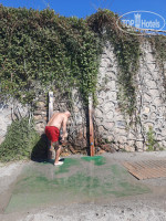 На пляже есть 1 кабинка туалета для всех (М иЖ) и 1 кабинка для инвалидов, и всё! По этому в туалете всегда куча бумаги, грязь, песок и вода на полу.