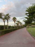 Достаточно приятная глазу - многолетние хвойные деревья около основного корпуса, газон, кустики и пальмы по остальной территории.