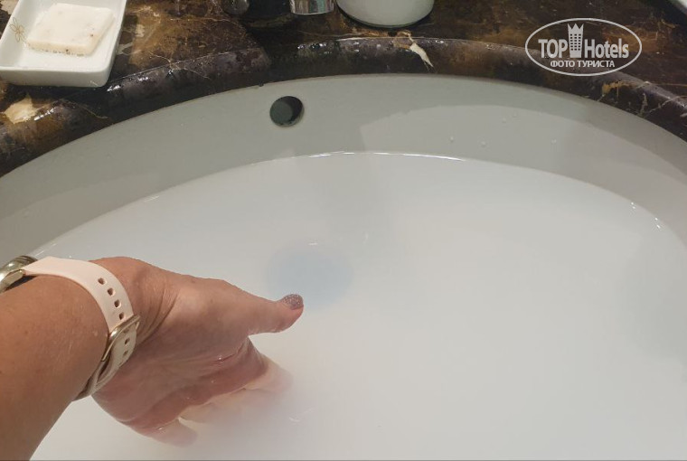 1. С самого начала не стекает вода в раковине (см. фото) - много раз говорила на ресепшн, ходила на гестрелейшн - пока все по старому