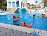 Организатором оборудованы три басеина с подогревом, сауна, детский басеин, огромный развлекательный комплекс для детей, которые находятся под присмотром лучших воспитателей и нянь. На территории есть детский сад, где за детками присмотрят, по занимаются развивающими занятиями, проведут мастер-класс, накормят и спатки вложат🙃😉, в то время пока родители занимаются собственным отдыхом. Кроме того на территории отеля большой выбор детских атракционнов, различные батуты, велосипеды, самокаты, машинки и т. д. Ежедневно проходят различные мастер-классы и активности которые проводит команда лучших ребят! 💪💪💪. Отель предоставляет медицинские услуги, услуги оздоровления. Вобщем всего не пересесть, но мы отдыхаем в данном отеле не первый раз и ещё планируем приехать, т. к. это незабываемый отдых😇 Всем рекомендую!