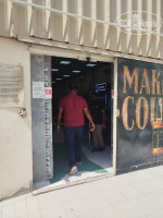 Алкомаркет от отеля на лево в сторону часов Как заканчивается асфальт, через метров 50 на право невзрачная арка с вывеской, за ней раздвижные двери слева (см фото).
